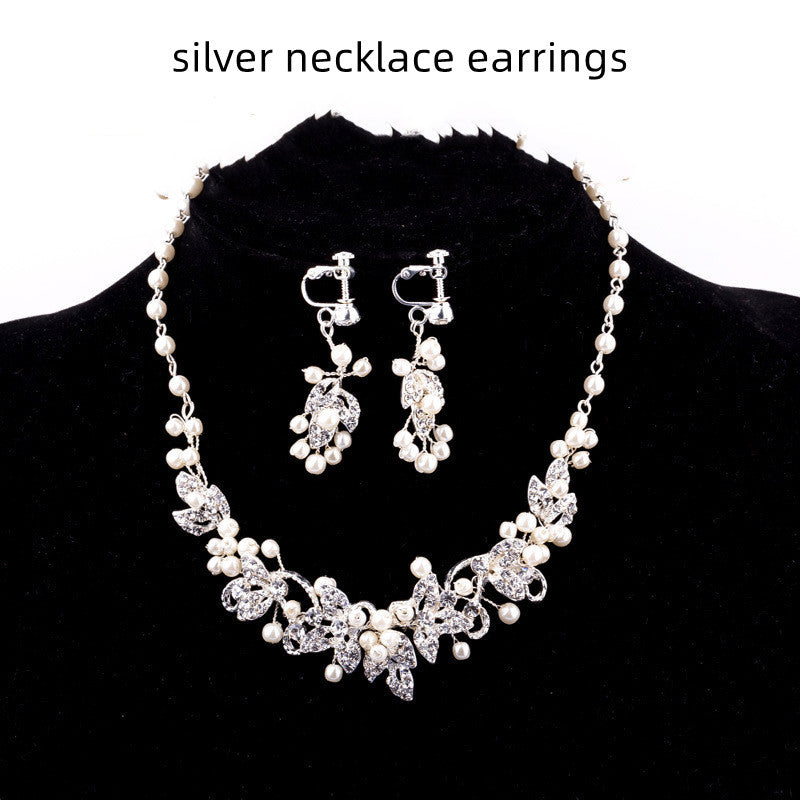 Color: Silver Crown, Silver Necklace Earrings (Ear Pin Type), Silver Necklace Earrings (Ear Clip Type)